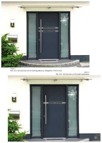 HA311: RAL 7031, ISO-Glas klar mit VA-Stahl-Applikation, Stoßgri Nr. EPA401/7031 HA312: RAL 7031, ISO-Glas klar mit VA-Stahl-Applikation 31