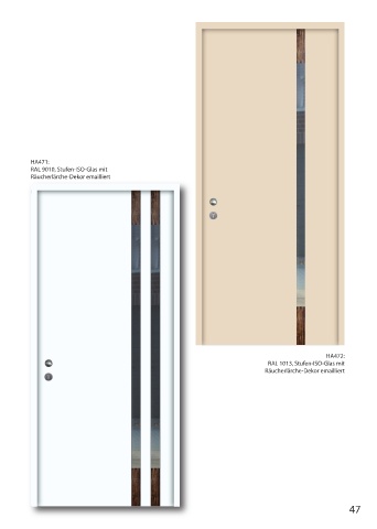 HA471: RAL 9010, Stufen-ISO-Glas mit Räucherlärche-Dekor emailliertäucherlärche-Dekor emailliert R HA472: RAL 1013, Stufen-ISO-Glas mit Räucherlärche-Dekor emailliert 47