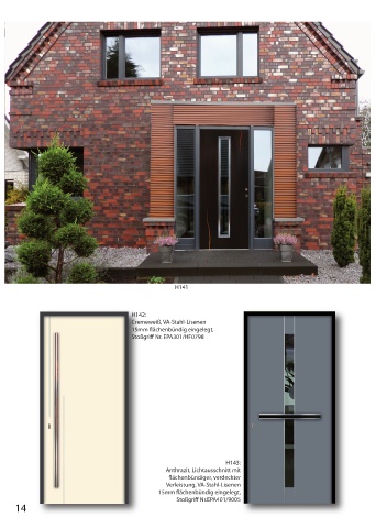H141 H142: Cremeweiß, VA-Stahl-Lisenen 15mm ächenbündig eingelegt, Stoßgri Nr. EPA301/HF0798 H143: Anthrazit, Lichtausschnitt mit ächenbündiger, verdeckter Verleistung, VA-Stahl-Lisenen 15mm ächenbündig eingelegt, Stoßgri Nr.EPA401/9005 14