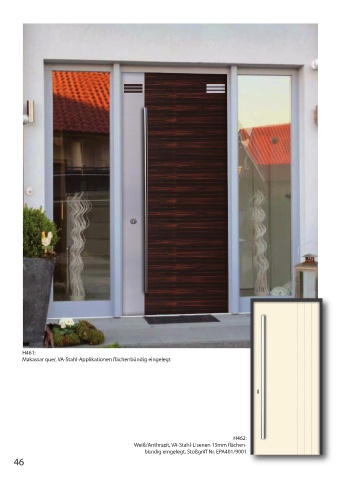 H461: Makassar quer, VA-Stahl-Applikationen ächenbündig eingelegt H462: Weiß/Anthrazit, VA-Stahl-Lisenen 15mm ächen- bündig eingelegt, Stoßgri Nr. EPA401/9001 46