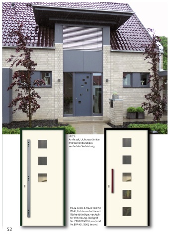 H521: Anthrazit, Lichtausschnitte mit ächenbündiger, verdeckter Verleistung H522 (LINKS) & H523 (RECHTS): Weiß, Lichtausschnitte mit ächenbündiger, verdeck- ter Verleistung, Stoßgri Nr. EPA2036005 (LINKS) und Nr. EPA401/3002 (RECHTS) 52