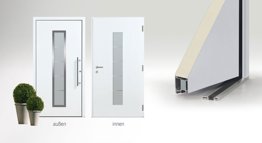 Bei der Vollblatt-Ausführung bekommen Sie besseren Wärmeschutz, höhere Stabilität und mehr Sicherheit! Der gesamte Türflügel wird nicht als Rahmen und Füllung sondern als Vollblatt-Flügel ausgeführt - unter Verwendung von hochwertigen Composite-Werkstoffen, ummantelt mit Aluminium.