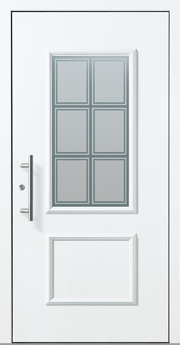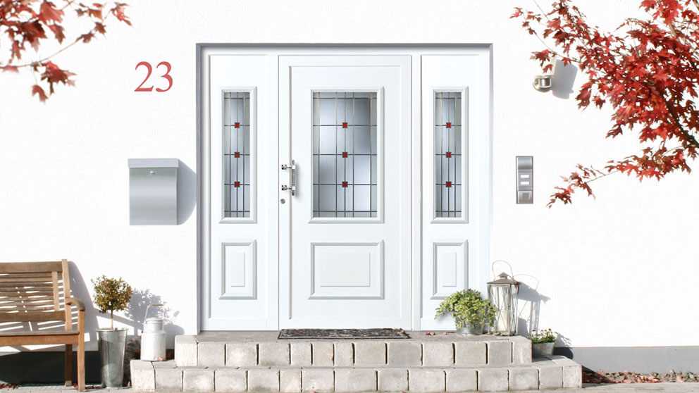 Moderne Glasveredelungstechnik gibt bei vielen Haustüren großflächigen Sichtschutz und ermöglicht gleichzeitig eine helle Atmosphäre für den inneren Eingangsbereich. Die Glasausstattung bei den noblesse-Haustüren STARNBERG, MAILAND, NIZZA und PORTO ist mit Kunstbruchglas wählbar.