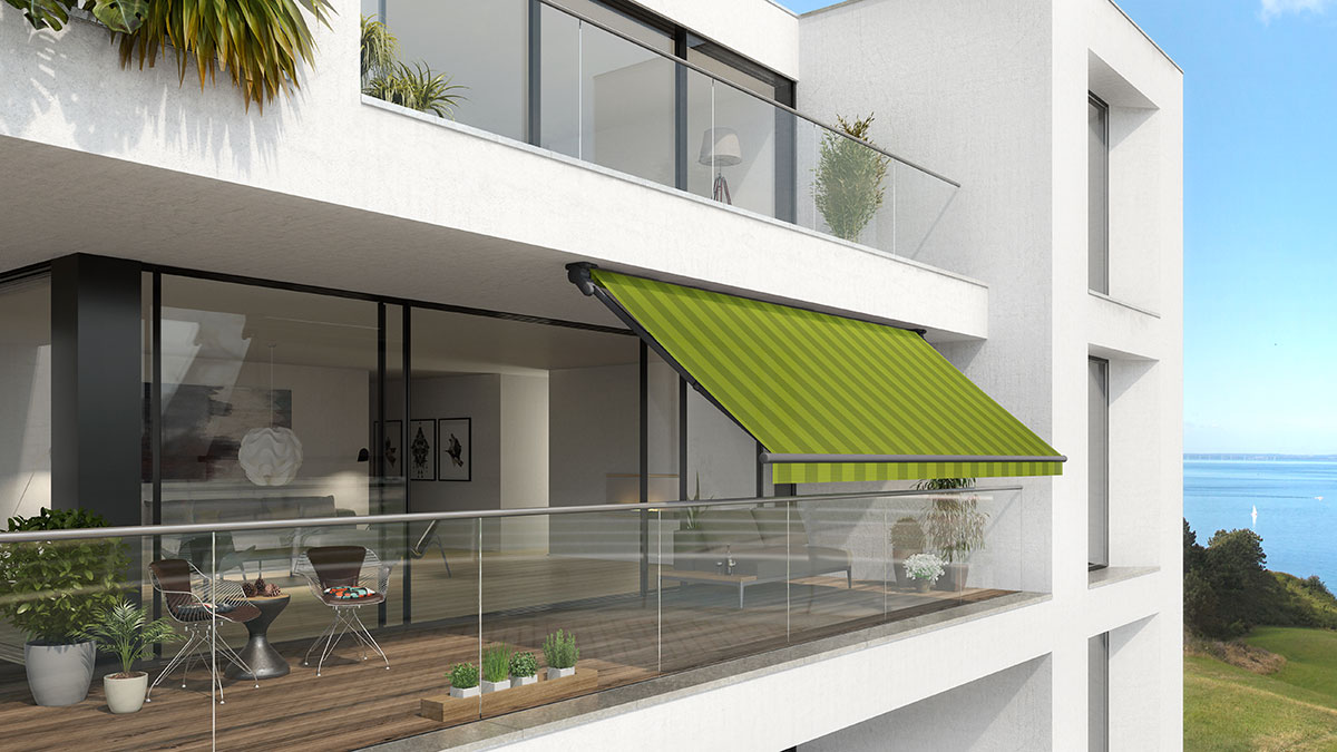 In schmalen Nischen, auf engen Terrassen oder Balkonen bringt markilux stretch die nötige Flexibilität: Mit zwei sich überkreuzenden Armen fahren auch Markisen mit geringer Breite weit heraus.