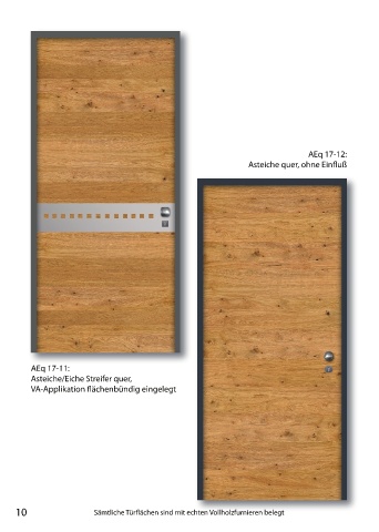 AEq 17-12: Asteiche quer, ohne Ein uß AEq 17-11:q 17-11: AE Asteiche/Eiche Streifer quer, VA-Applikation ächenbündig eingelegt 10 Sämtliche Tür ächen sind mit echten Vollholzfurnieren belegt
