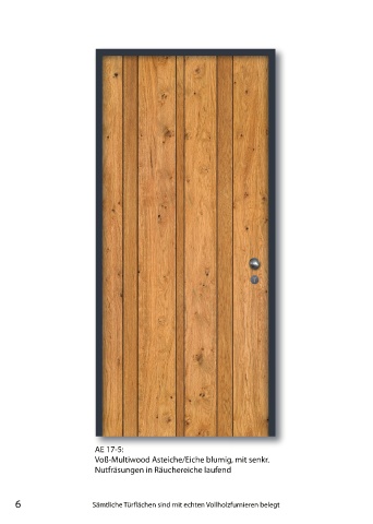 AE 17-5: Voß-Multiwood Asteiche/Eiche blumig, mit senkr. Nutfräsungen in Räuchereiche laufend 6 Sämtliche Tür ächen sind mit echten Vollholzfurnieren belegt