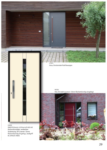 H291: Grau, Horizontale Nutfräsungen H293: Rot, VA-Stahl-Lisenen 15mm ächenbündig eingelegt H292: H292: Weiß/Schwarz, Lichtausschnitt mit ächenbündiger, verdeckter Verleistung, VA-Lisenen 15mm ächenbündig eingelegt, Stoßgri Nr. EPA301/9005 29