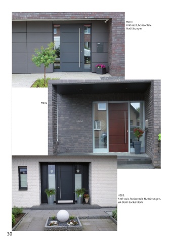 H301: Anthrazit, horizontale Nutfräsungen H302 H303: Anthrazit, horizontale Nutfräsungen, VA-Stahl-Sockelblech 30