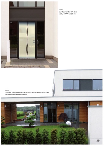 H391: Durchgehendes ESG-Glas, weiß/HF0798 emailliert H392: ESG-Glas, schwarz emailliert, VA-Stahl-Applikationen ober- und unterhalb des Lichtausschnittes 39