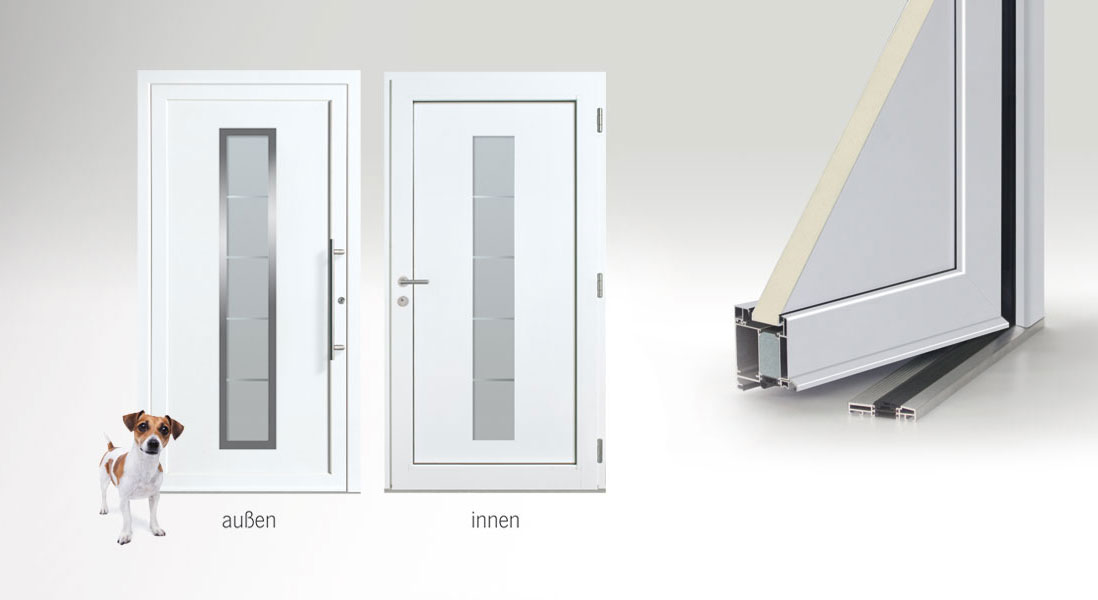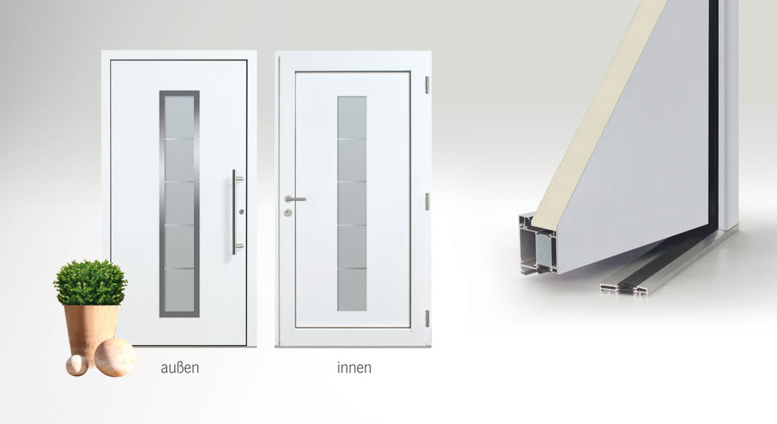 Bei der Vollblatt-Ausführung bekommen Sie besseren Wärmeschutz, höhere Stabilität und mehr Sicherheit! Der gesamte Türflügel wird nicht als Rahmen und Füllung sondern als Vollblatt-Flügel ausgeführt - unter Verwendung von hochwertigen Composite-Werkstoffen, ummantelt mit Aluminium.